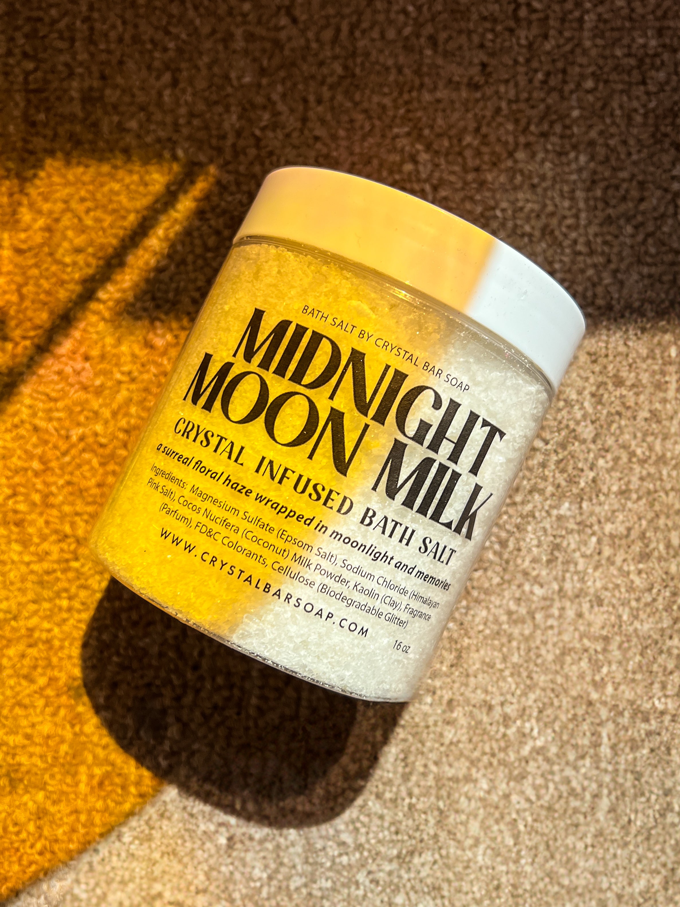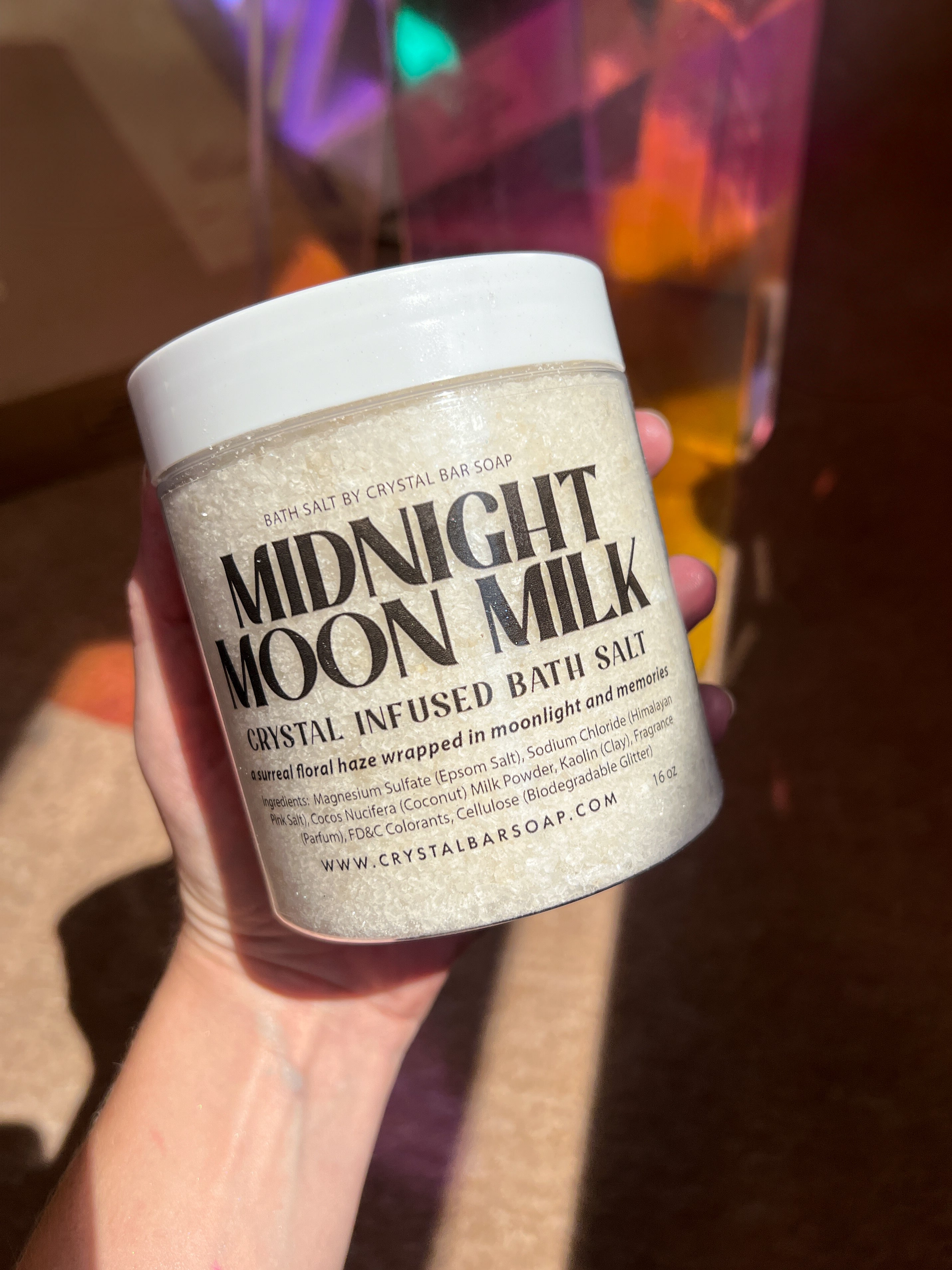 Each jar is embedded with moonstone, ready to be placed in the water so its soothing, lunar energy can infuse your bath with calm, intuition, and gentle light.