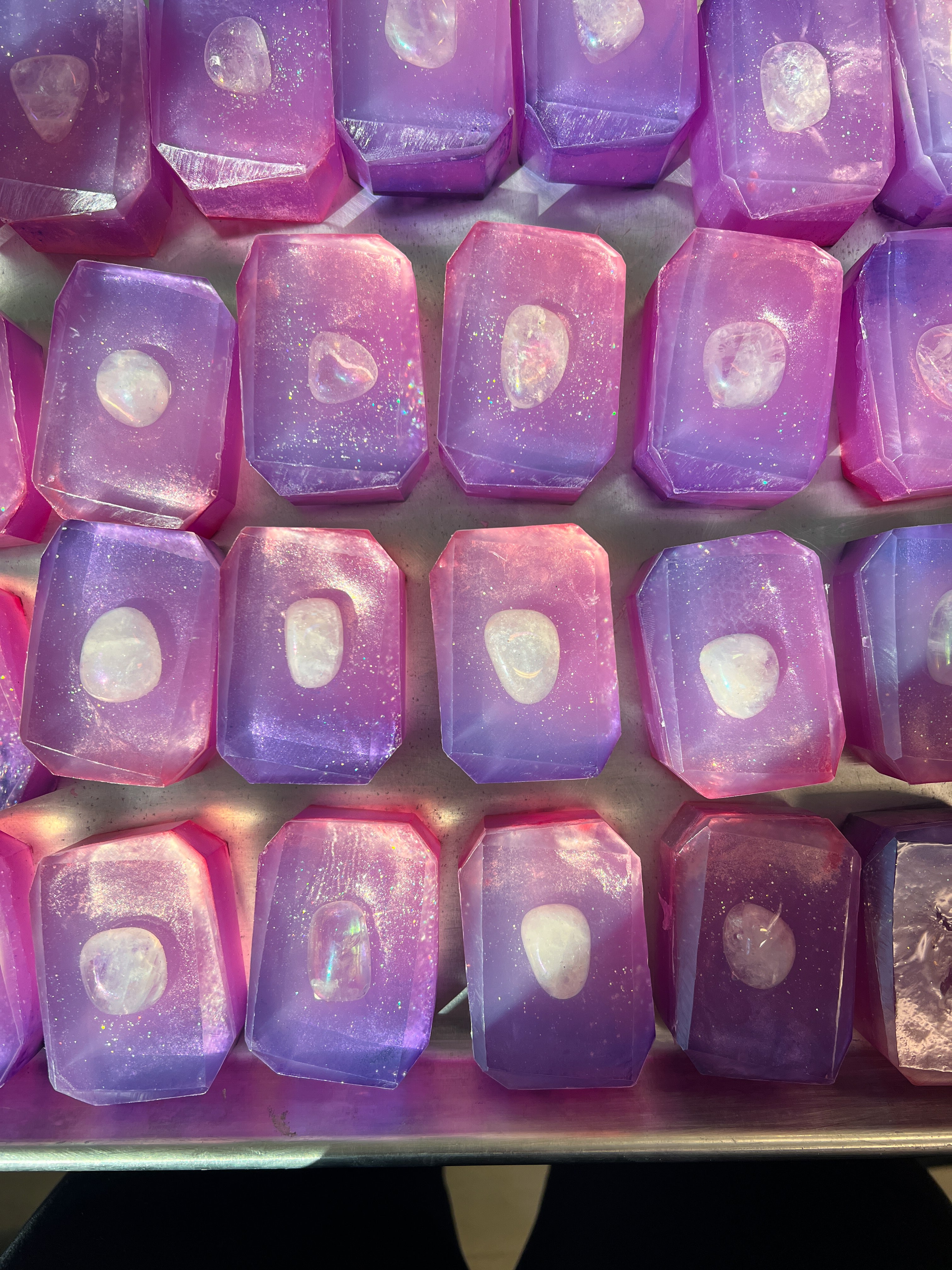 Show 'em your inner glow with Inner Light bar soap! Our soap is made with angel aura quartz to help you shine, making it easier to draw out your luminescence spirit and become a beacon of light! Using Angel Aura helps one transform into a beacon of inner beauty, peace, and spiritual awareness during their journey in this world.  Scented in a sweet blend of Raspberry and Sweet Vanilla to make you smell just as sweet as you. Unleash your inner light and get glowing! 🤩