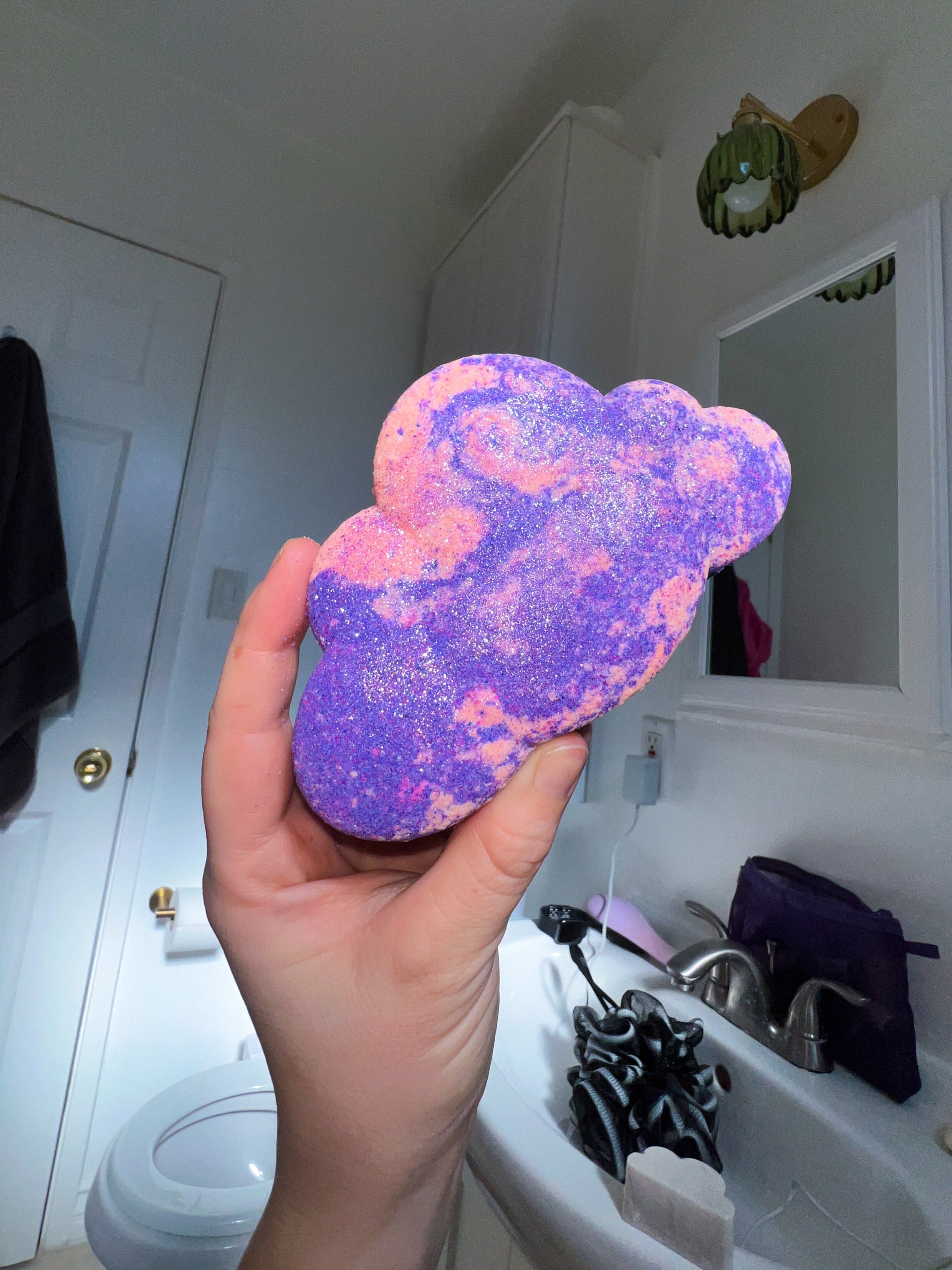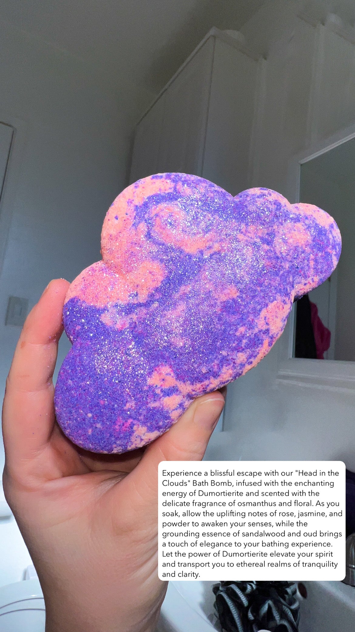 Experience a blissful escape with our "Head in the Clouds" Bath Bomb, infused with the enchanting energy of Dumortierite and scented with the delicate fragrance of osmanthus and floral. As you soak, allow the uplifting notes of rose, jasmine, and powder to awaken your senses, while the grounding essence of sandalwood and oud brings a touch of elegance to your bathing experience. Let the power of Dumortierite elevate your spirit and transport you to ethereal realms of tranquility and clarity.