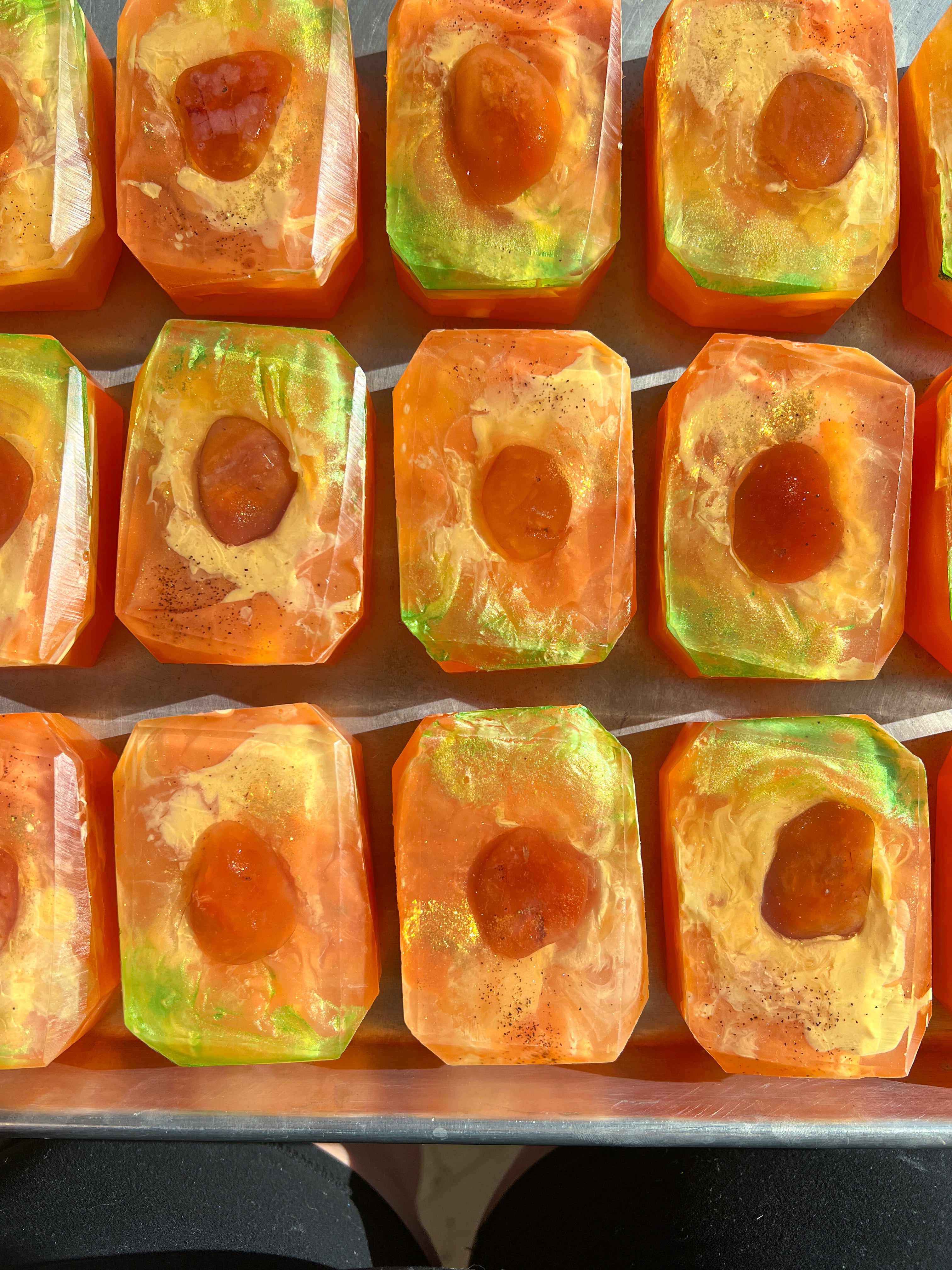 Queen of Carrot reigns supreme as the ultimate soap for creativity, confidence, and renewal. Infused with the vibrant energy of carnelian, this soap empowers you to embrace change, conquer challenges, and shine with unwavering confidence. Carnelian is known for igniting motivation and providing the stamina needed to pursue your dreams while shielding you from negative emotions that may arise during life's transformations.