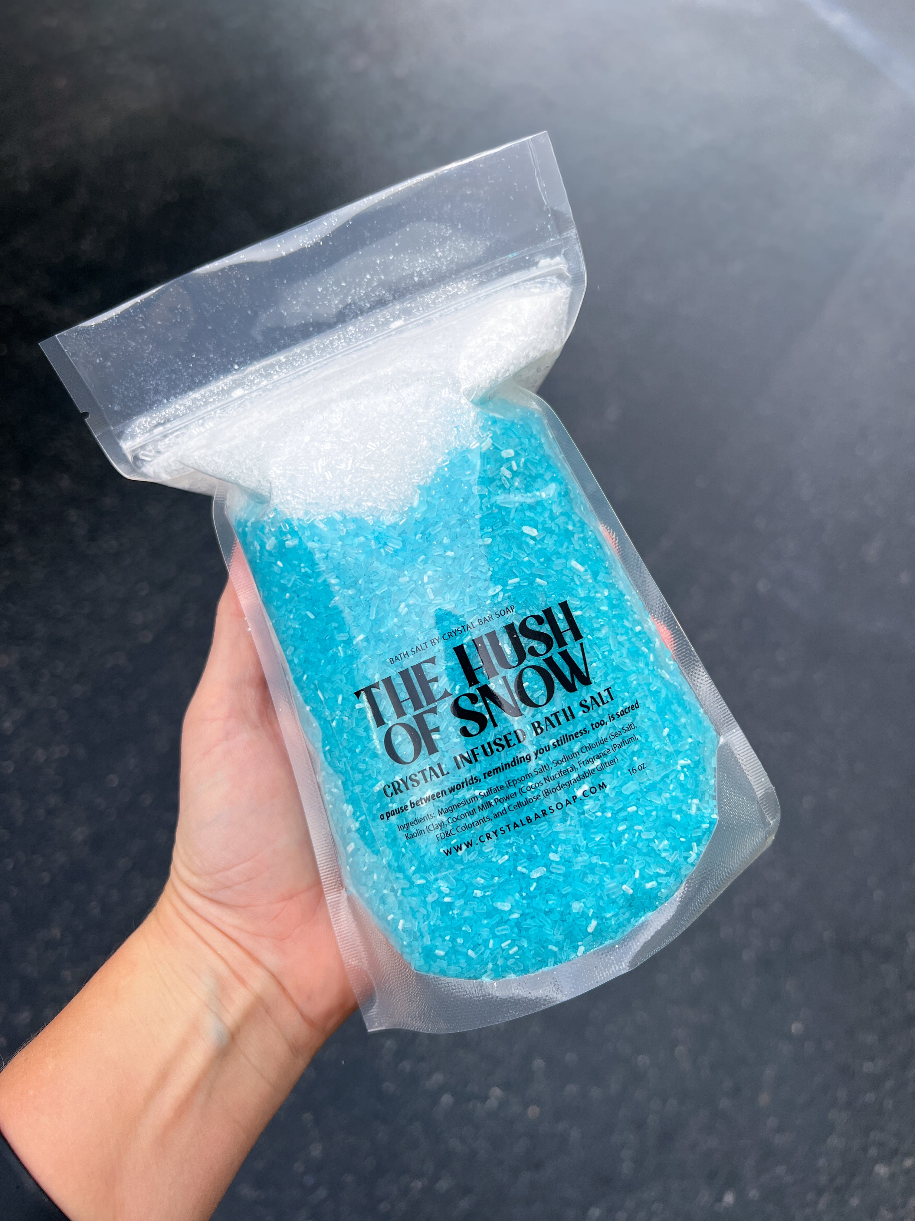 Magnesium Sulfate (Epsom Salt), Sodium Chloride (Dead Sea Salt), Cocos Nucifera (Coconut) Milk Powder, Kaolin (Clay), Fragrance (Parfum), FD&C Colorants, Cellulose (Biodegradable Glitter)