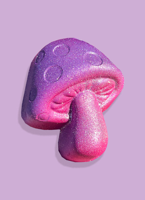 Sink into something a little surreal with Magik Mushroom—a bath bomb that turns your tub into a swirling, technicolor forest dream. As it fizzes, ribbons of color and soft foam drift through the water, releasing an earthy-floral aroma that feels both grounding and slightly otherworldly—like stepping into a hidden grove where everything hums just a little brighter.